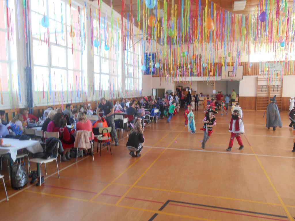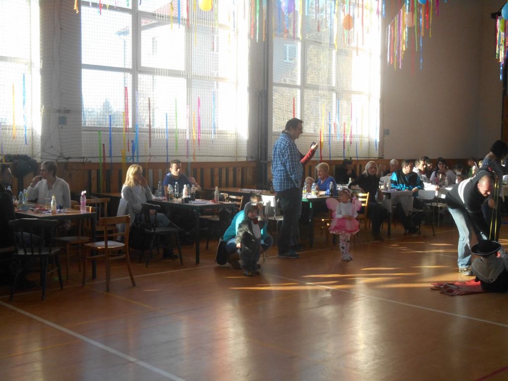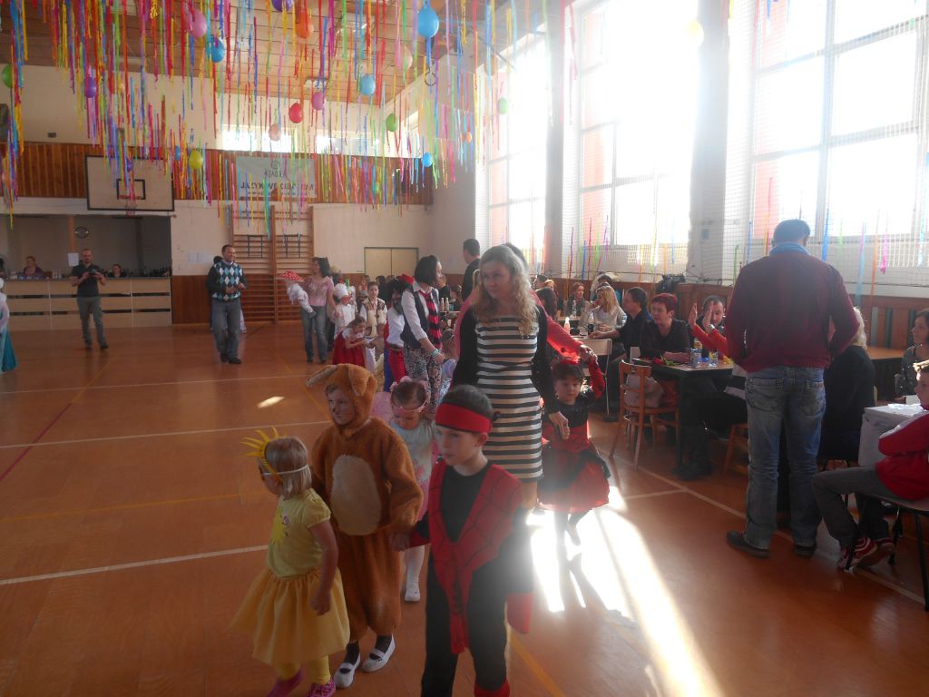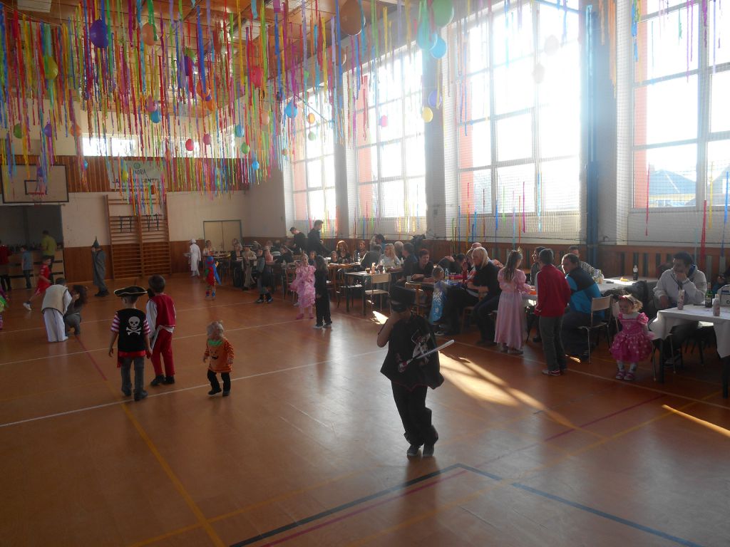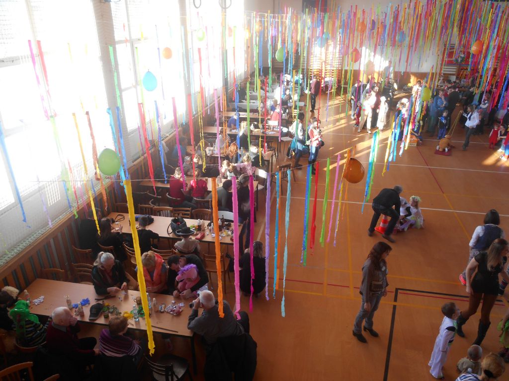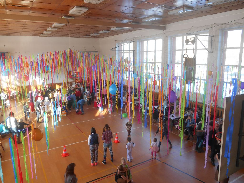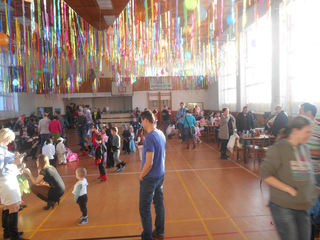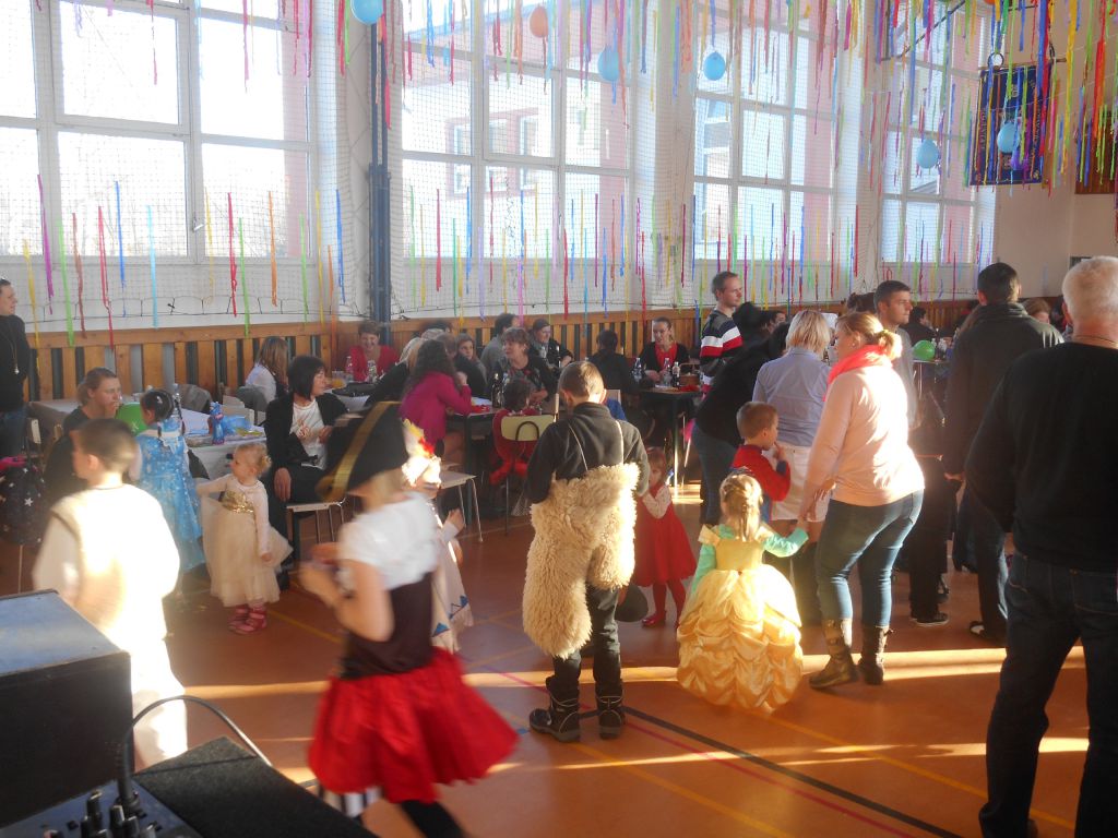 Po krátkém spánku jsme se opět sešli v tělocvičně abychom stihli uklidit nepořádek po maškarním dospělých a nachystat prostor pro skotačení a pestrý program na maškarní dětský :)