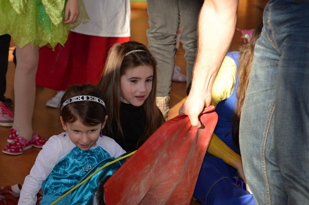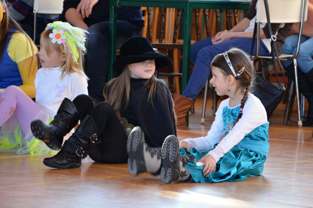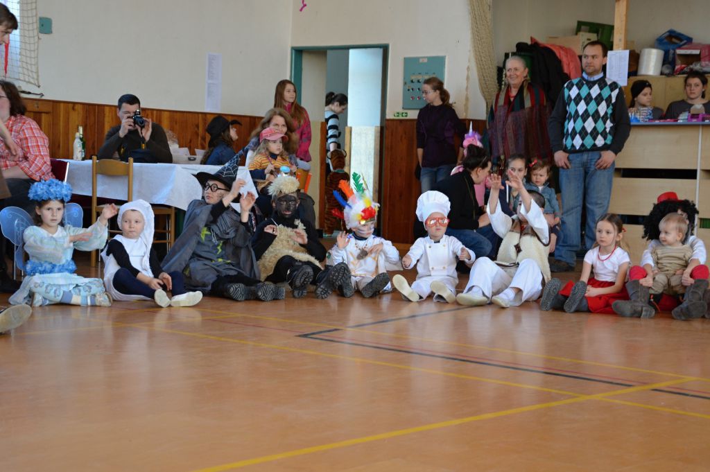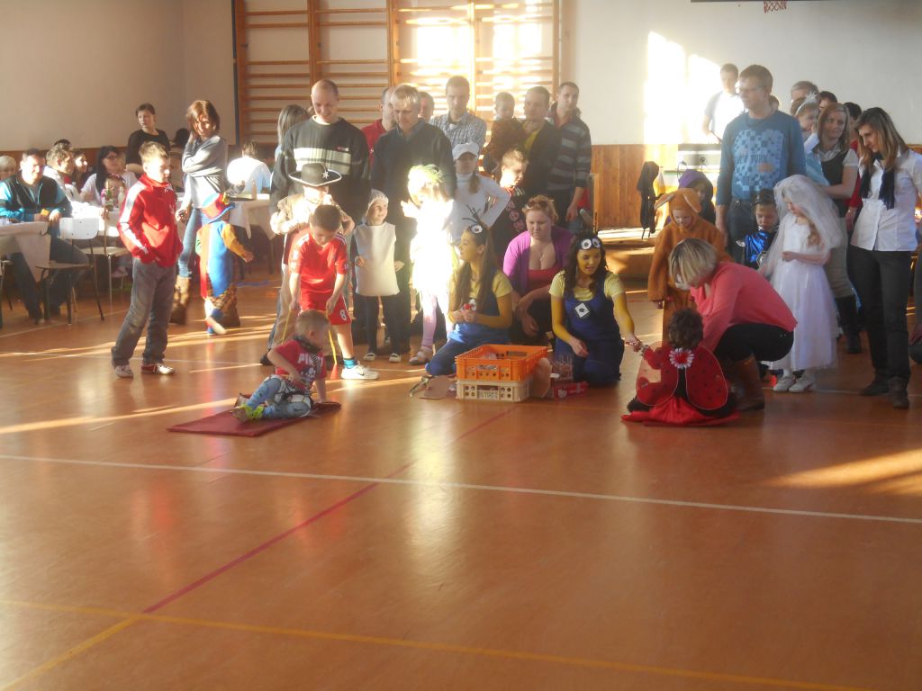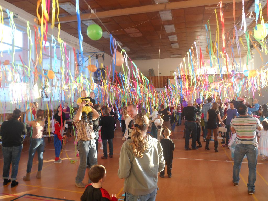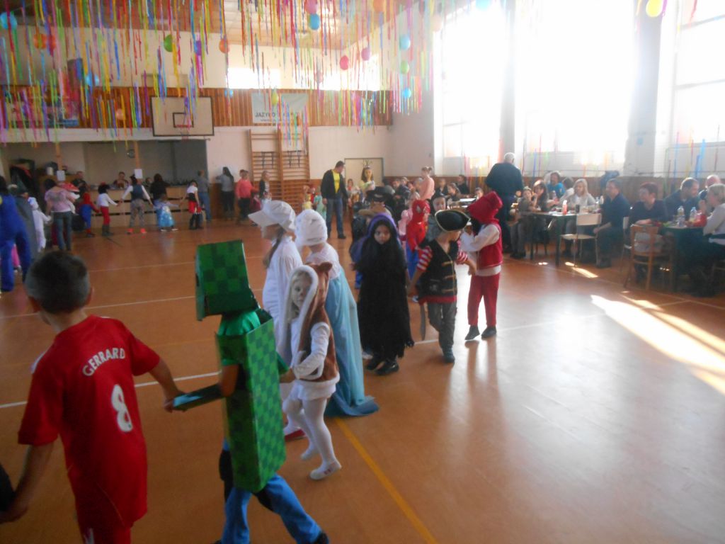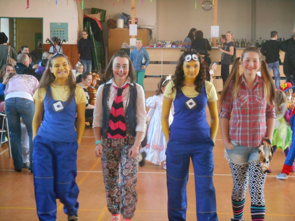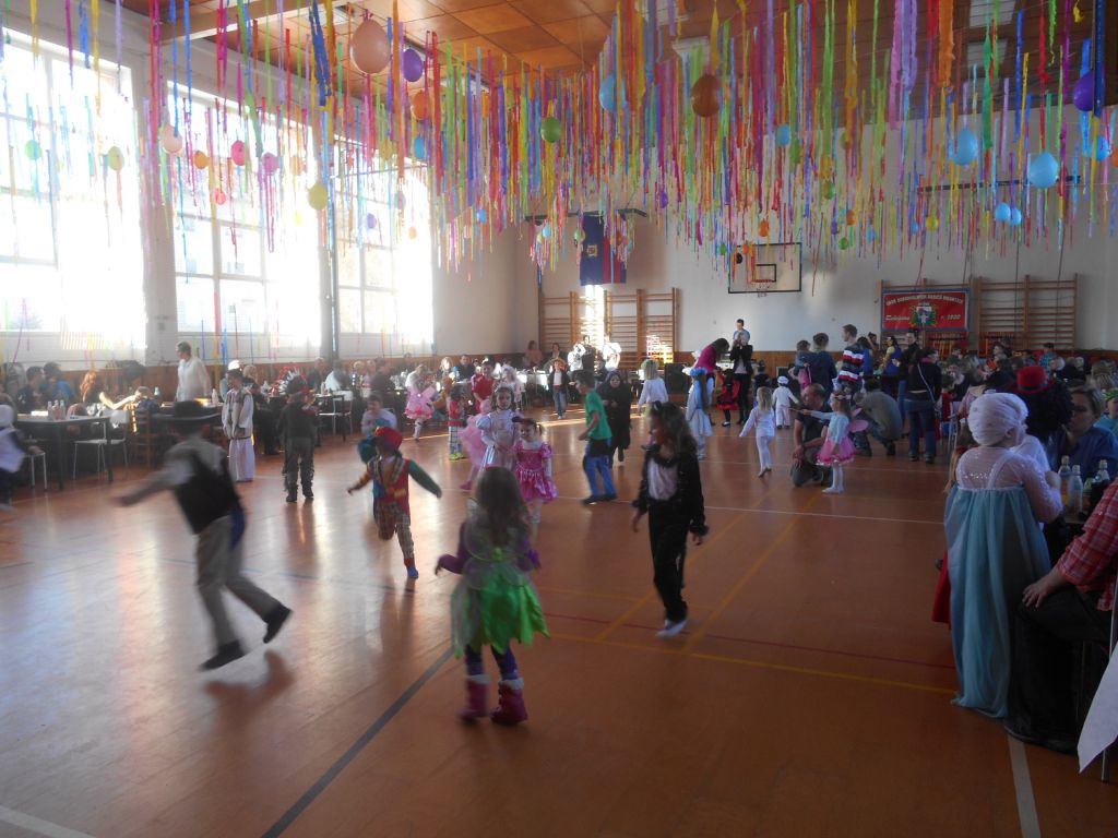 Po krátkém spánku jsme se opět sešli v tělocvičně abychom stihli uklidit nepořádek po maškarním dospělých a nachystat prostor pro skotačení a pestrý program na maškarní dětský :)